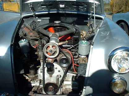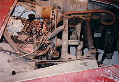 photo shows greatly modified engine bay: far left - a bit of the engine.