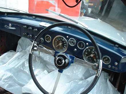 Don't the side badges, above, and grille (all restored by John Blaze) look gorgeous? At this stage the Farina Jup is nearly ready except that Pat has yet to solve the problem of getting a new windscreen for it. |